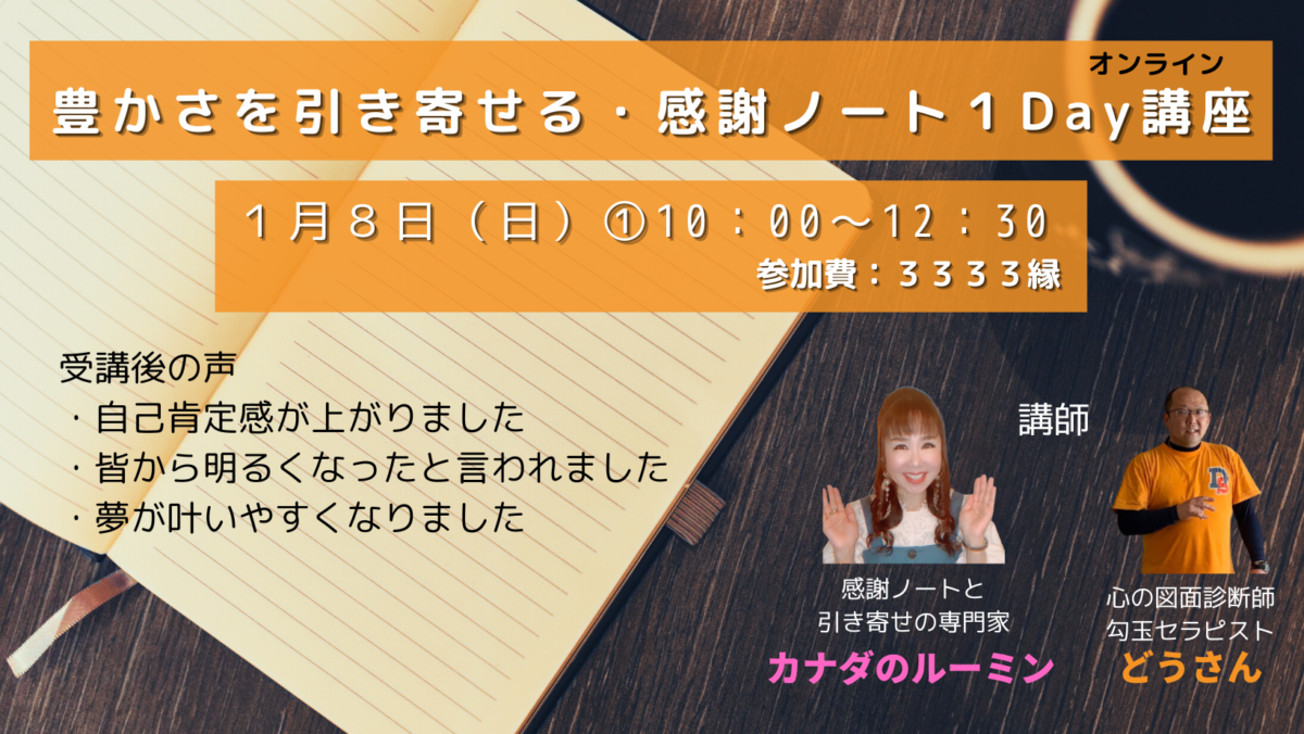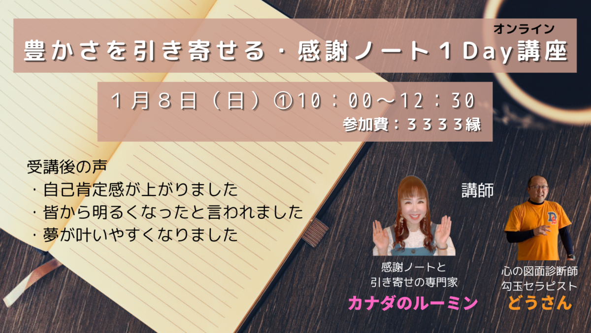 『豊さを引き寄せる・感謝ノート1Day講座』